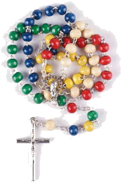 Mit dem Missionsrosenkranz wird für den Frieden in der Welt und für alle Menschen gebetet. Die fünf verschiedenen Farben stehen für die fünf Kontinente.